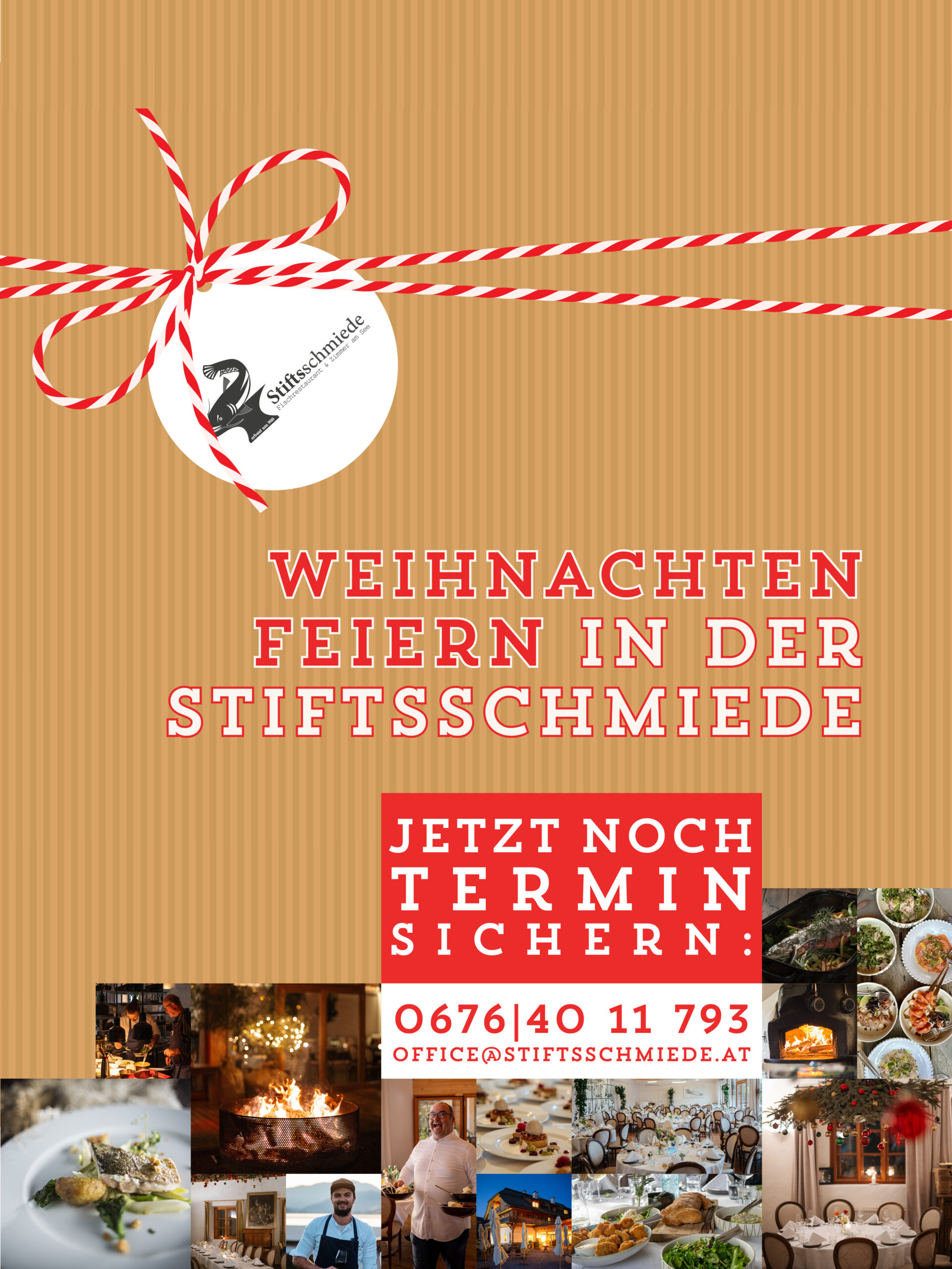Für die Planung Ihrer Weihnachtsfeier freuen wir uns auf Ihre Anfrage 💌 – gerne nehmen wir uns Zeit, um Ihre Feier ganz nach Ihren Vorstellungen und Wünschen zu organisieren ✨. Kontaktieren Sie uns dafür telefonisch unter 📞 +43 676 4011793 oder per E-Mail an 📧 office@stiftsschmiede.at